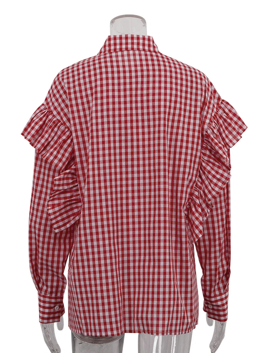 Loose Plaid Cotton Blouse Casual Long Sleeve Shirts